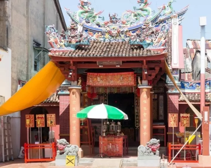 Fotturen starter i hjertet av gamlebyen i Phuket, ved Shrine of the Serene Light, i dagligtale kjent som Sang Tham Shrine. Her forteller guiden om tempelets betydning for de mange thai-kinesiske beboerne.