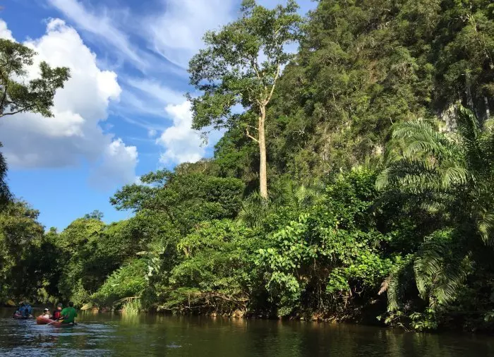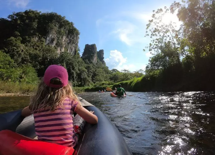 Det er en fantastisk opplevelse å gli stille avsted på elven mens du suger til deg av inntrykkene fra den omliggende regnskogen. Nyt synet av de vakre kalksteinsklippene og den frodige naturen.