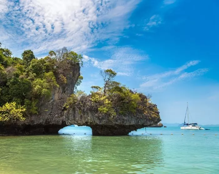Først reiser du ut til Hong Island. Den ligger mellom øyene Krabi og Koh Yao. Hong Island er en del av nasjonalparken Than Bok Khorani og kjent for sin store skjønnhet. Hong Island består av to fantastisk vakre strender med fin, hvit sand og krystallklart vann som er omgitt av dramatiske kalksteinsklipper. Resten av øya er dekket av frodig jungel der ulike plante- og dyrearter trives.