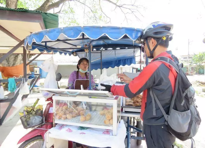 Underveis kan du, hvis du er heldig, komme forbi en gateselger der du kan kjøpe de populære thailandske dessertene stekte bananer og ”kanom kai hong”, også kalt svaneegg. Sistnevnte minner litt om smultringer i smaken.