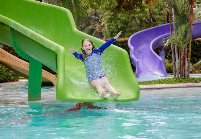 Når du ikke er på sightseeing, kan du avkjøle deg med en dukkert i svømmebassenget som er både for store og små. Her er det også liggestoler og høye, grønne palmer som skaper tropisk stemning.