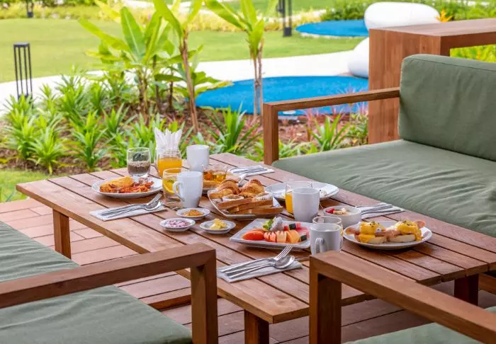 Etter en deilig frokostbuffet på Mala Kitchen med pannekaker, vafler, tropisk frukt, ost, ferskbakt brød m.m.. kan du ta en tur ned til resortens private strand. Her er det parasoller og liggestoler der du kan nyte livet til lyden av de rolige bølgene. Hvis du foretrekker svømmebasseng, har Outrigger Khao Lak Beach Resort et flott evighetsbasseng med utsikt til stranden. Her er det også et mindre basseng for de små.