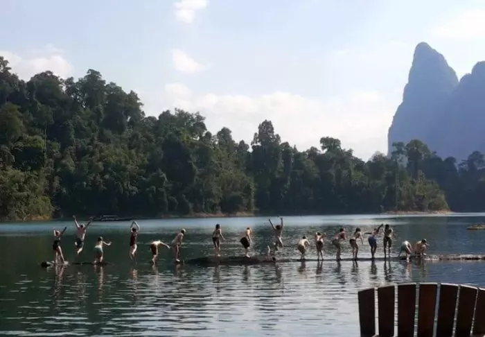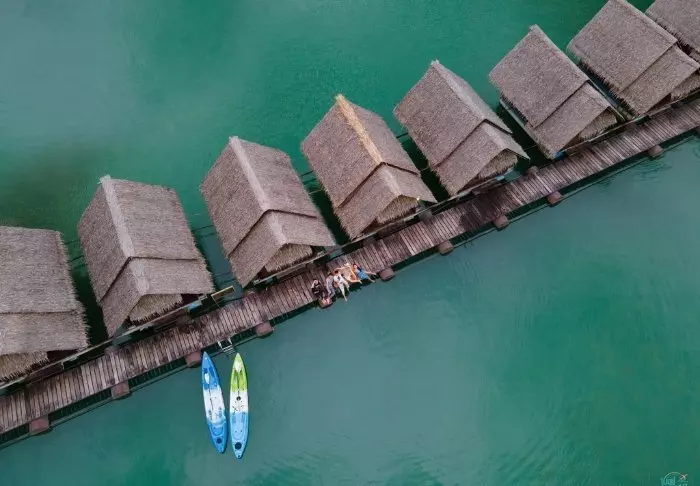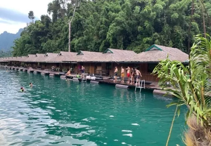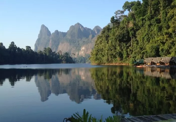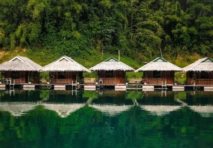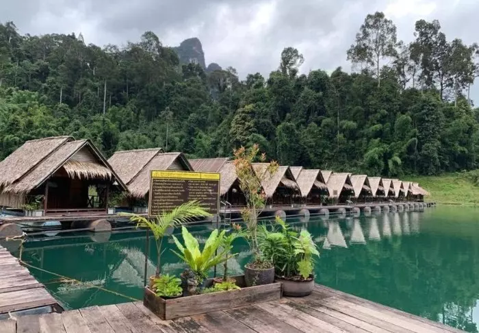 Tenk deg en innsjø med smaragdgrønt vann, høye kalksteinsklipper som stiger rett opp av vannet, og små øyer med jungel. Legg til fuglesang og apeskrik. Dette er scenen for Praiwan Raft House.