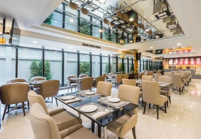 Hotellet har også kafe og restaurant som både serverer frokost, lunsj og middag.