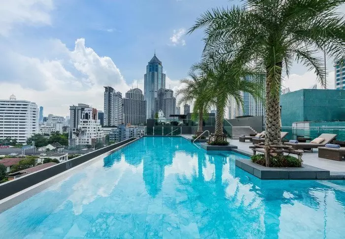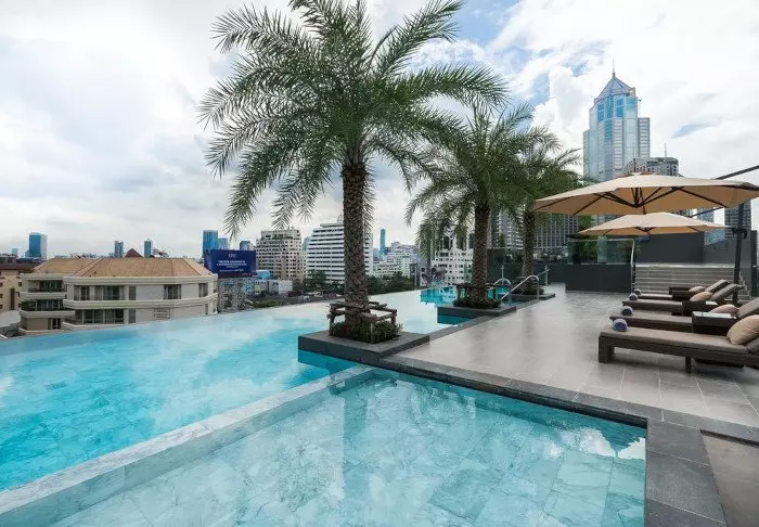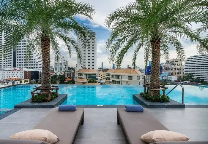 I hotellets øverste etasje finner bassengområdet med svømmebasseng for både store og små. Her kan du slappe av på en liggestol og nyte solen og utsikten over den travle millionbyen, mens palmene vaier i den tropiske brisen. Det er også her du finner hotellets rooftop-bar, der du kan nippe til en kjølig drink etter en dag med mange nye inntrykk og opplevelser.