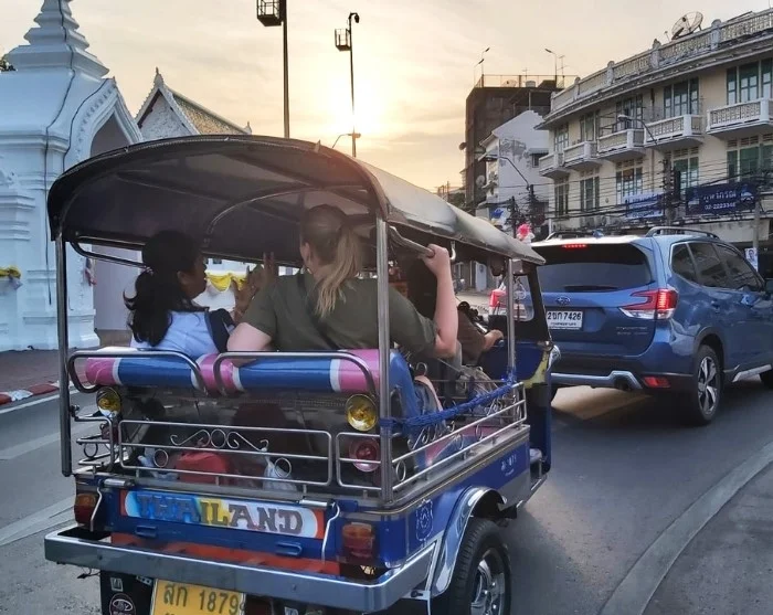 Når du beveger deg rundt i Bangkok, trenger du ikke bekymre deg for den beryktede trafikken, for byen har et godt utvalg forskjellige transportmidler. Mange velger tuk-tuker og Grab, men også elvetaxiene er populære. De utgjør en viktig del av den offentlige transporten fordi de legger til ved mange av byens store severdigheter. I tillegg er det også Sky Train, som slynger seg mellom byens skyskrapere, og er en god, rask og billig måte å komme seg rundt på.