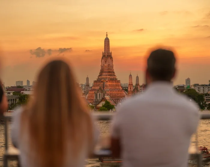 Her kan du slappe av på en takbar ved elven med en drink i hånden, mens du nyter utsikten og den livlige stemningen. Bangkok føles sjelden mer levende enn akkurat her.