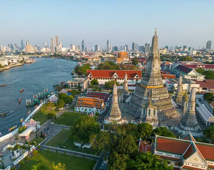 Bangkok er delt inn i øst og vest av Chao Phraya-elven, som er 372 km lang. Den østlige delen av byen regnes som det sentrale Bangkok, med populære områder som Sukhumvit, Silom og China Town, som har massevis av kjøpesentre, gode spisesteder og lokale markeder. Det er også på østsiden du finner den historiske delen av Bangkok, med blant annet det berømte kongepalasset og Wat Phra Kaew, med den vakre smaragdbuddhaen.