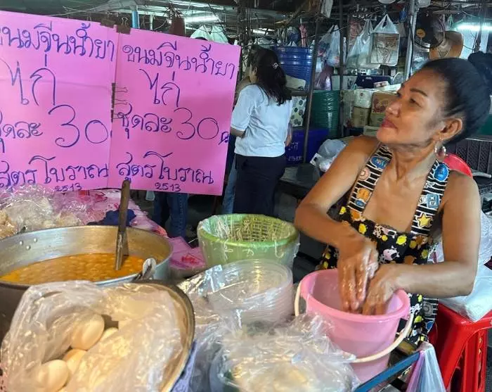 Neste stopp er et lokalt nattmarked, hvor du får god tid til å vandre rundt mellom de mange bodene. Her får du smake på lokale delikatesser, for eksempel braisert svineknoke (khao kha mu), kokospudding og klebrig ris med egg (bua loi khai waan).