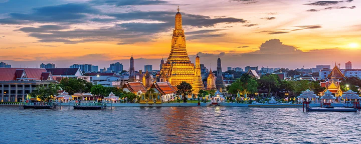 Reisen begynner i den pulserende hovedstaden Bangkok, hvor smakfulle gatekjøkken, panoramiske skybarer og skarpe kontraster møtes. Vi inviterer deg med på en streetfood-tur i tuktuk, som gir et unikt innblikk i byens fantastiske spisesteder og lokale liv. Kvelden avsluttes på en koselig takbar ved Chao Phrayaelven med utsikt til det opplyste tempelet Wat Arun.