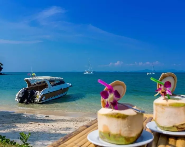 Du blir hentet på hotellet og kjørt til bryggen, der en tradisjonell longtail-båt venter på å bringe deg ut på det turkisblå havet.