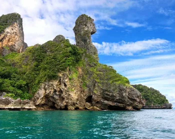 Enda lenger mot øst ligger de paradisiske Phi Phi-øyene. Dem kan du oppleve på en heldagsutflukt der det er god tid til å bade, snorkle og slappe av på de kritthvite sandstrendene.