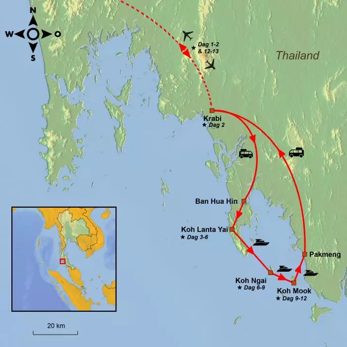 I løpet av denne reisen bor du på tre helt forskjellige øyer, hver med sin spesielle sjarm: Koh Lanta, Koh Ngai og Koh Mook. Her venter det fine hvite sandstrender, flott natur og utsikter, høye loddrette fjell, små lokalsamfunn samt raske speedbåter og tradisjonelle “vispbåter” som frakter deg fra den ene øya til den neste.