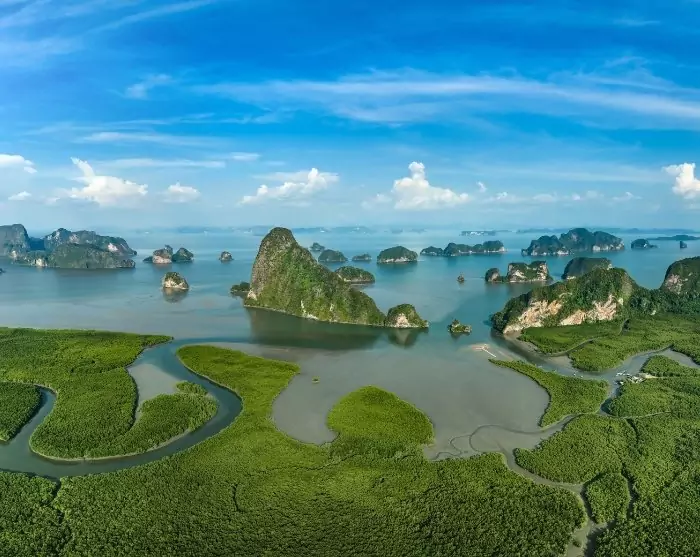 Øst for Phuket ligger Phang Nga-bukten, kjent for sine mange øyer og imponerende kalksteinsklipper. Det er bl.a. her i bukten at du finner den legendariske “James Bond-øya”, der deler av Mannen med den gyldne pistol ble filmet i 1974.