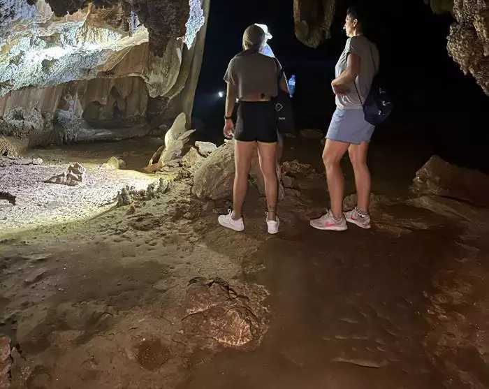 Du kan også bli med på en spennende fottur som tar deg gjennom jungelen til en av de vakre stalaktittgrottene i området, kjent som «korallgrotten». Ta med vanntette og solide sko med lukket tå, og vær oppmerksom på at det kan være glatt i regntiden. Du og guiden din reiser med longtail-båt til der fotturen starter. På turen får du oppleve jungelen med sitt fantastiske dyre- og fugleliv, der guiden forteller om de forskjellige artene underveis. Etter ca 45 minutter kommer du til en lagune hvor en bambusflåte venter på å ta deg til korallgrotten, som tar ca 15 minutter. Inne i grotten får du se vakre stalagmitter og stalaktitter som ligner på elefanter, hekser og slanger. Turen går tilbake på samme måte som du kom.