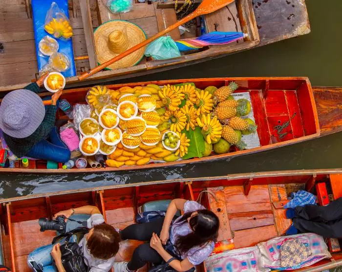 Når du skal komme deg rundt i Bangkok, trenger du ikke å være bekymret for den beryktede trafikken, for byen har et godt tilbud av forskjellige transportmidler. Mange bruker tuktuk-er, men elvedrosjene er også populære. De står for en vesentlig del av den offentlige transporten, for de legger til ved mange av byens store severdigheter. I tillegg kan du ta Sky Train. Det snor seg mellom byens høyhus og er en god, rask og billig måte å komme seg frem på.