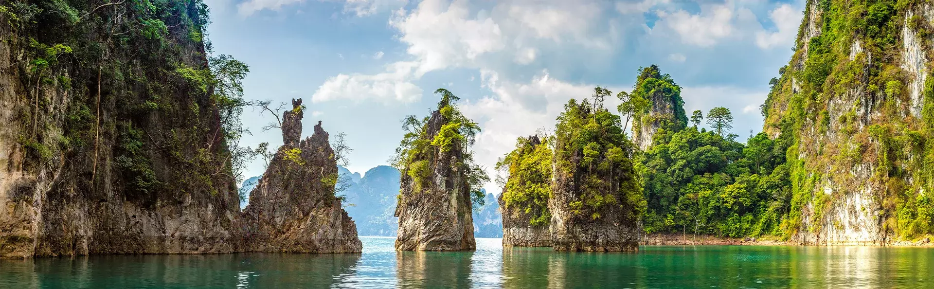 Deretter setter du kursen sørover, til Thailands trolig vakreste nasjonalpark, Khao Sok, der det venter et ekte jungeleventyr. Du bor én natt i den frodige jungelen med fuglekvitter og apehyl og én natt på den magiske sjøen Cheow Lan, der kalksteinsklipper stikker opp av det smaragdgrønne vannet.