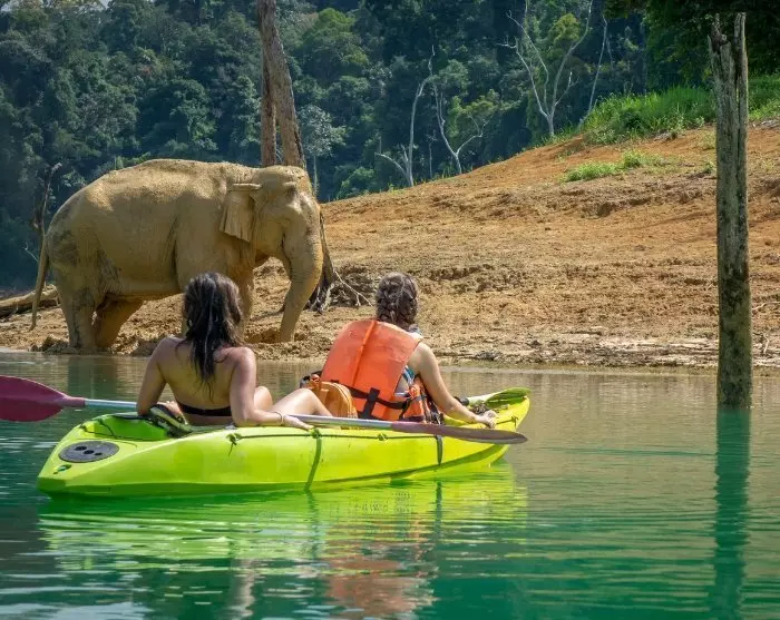Kjøreturen fra Surat Thani flyplass til hotellet ditt tar omtrent 1 time og 40 minutter. Når du ankommer overnattingsstedet ditt, venter en rolig kanotur på Sok-elven. Det er en herlig opplevelse å gli fredelig av sted på elven, mens du tar til deg alle inntrykkene fra den omkringliggende regnskogen. Nyt synet av de dramatiske kalksteinsklippene og den frodige naturen. I tretoppene kan du høre fuglene synge, og tett ved elvebredden får du kanskje et glimt av en leguan. Det beste av alt er at du bare kan lene deg tilbake og nyte øyeblikket, mens din lokale guide padler for deg.