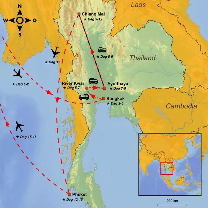 Du blir hentet på hotellet og kjørt til Chiang Mai flyplass, der du flyr til Thailands badeferiereisemål nr. 1: Phuket.