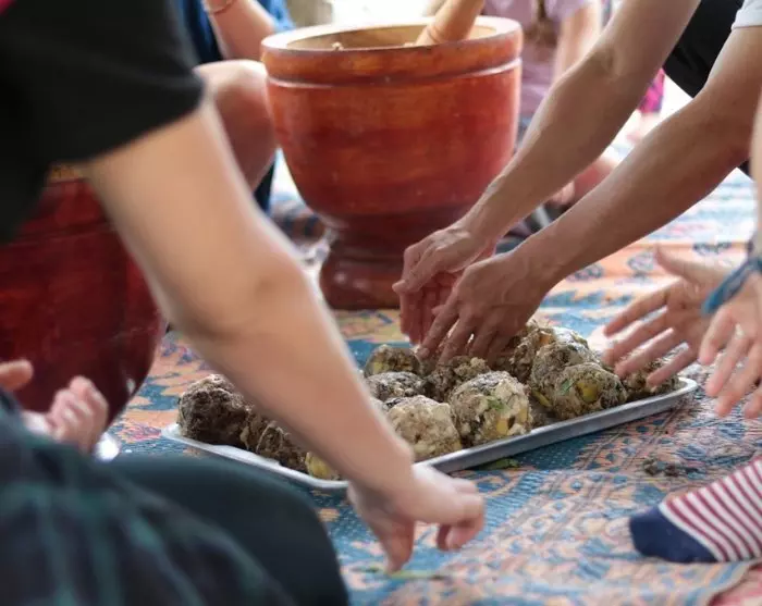 ChangChill har også sin egen urtehage, og her lærer du om planter, blader, røtter og urter som brukes som medisin til bl.a. elefanter. Mange av dem inneholder også gode næringsstoffer. Det sies nemlig at selv om elefanter spiser rundt 120 forskjellige plantearter, opptar de kun 40 % av næringsstoffene, og derfor trenger de litt ekstra næring i form av kosttilskudd. Derfor skal du i den neste aktiviteten være med på å lage elefantsnacks eller vitaminbomber med ingredienser fra bl.a. urtehagen.