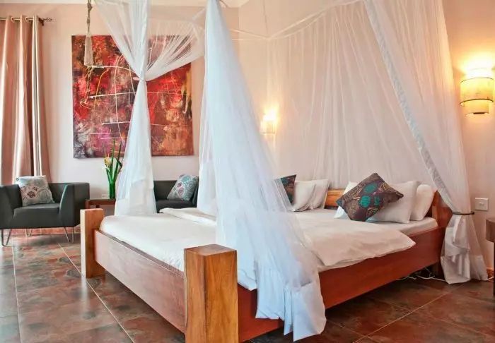 Hotellet har kun 16 rom, noe som bidrar til den hjemmekoselige og private atmosfæren. Alle rommene er vakkert innredet med fargerik kunst på veggene, dekorative møbler og elegante myggnett over alle sengene. Alle rom har også bad, TV og Wi-Fi.