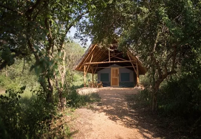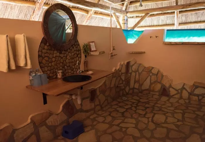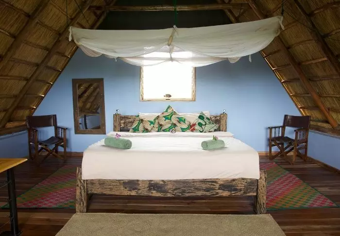 Lodgen består av både strådekte hytter og store telt med lerretsvegger. Alle rom er rustikt, men komfortabelt innredet med eget bad og toalett, safe, myggnett over sengene, solcellelys og USB-ladere. Hele lodgen bruker solenergi, så vær oppmerksom på at det ikke er tillatt å bruke for eksempel hårføner.