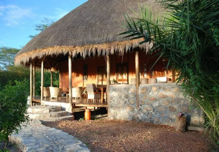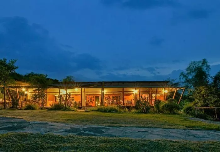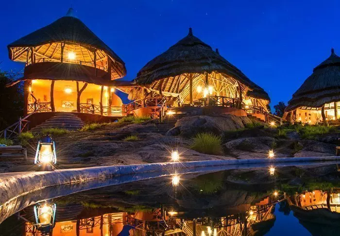 Lodgen består av ”bandas”-hytter som ligner karakteristiske hytter fra en liten afrikansk landsby. Hyttene er fordelt rundt på høyden, og noen av dem er oppdelt i etasjer. Fra hyttene er det flott utsikt over slettene og det tradisjonelle afrikanske landskapet. I hyttene finner du 18 moderne rom med eget bad som er innredet med blant annet behagelige senger.