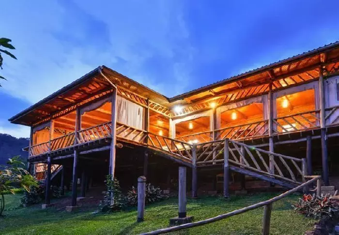 Selve lodgen er bygget av lokale håndverkere, og de har kun brukt lokale materialer som passer godt inn i omgivelsene. Dessuten er de fleste møblene og dekorasjonene håndlaget av lokalbefolkningen.