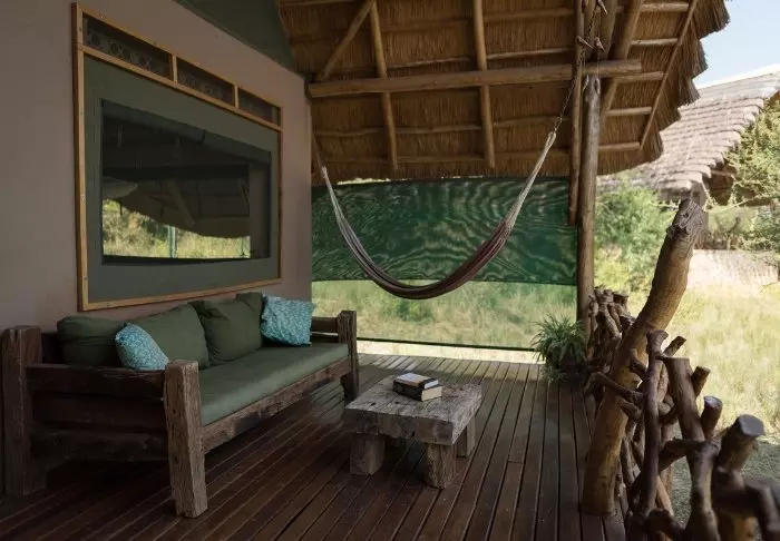 Lodgen består både av hytter og telt, og alle er sjarmerende innredet med eget bad/toalett og veranda. Det er kun brukt lokale materialer til lodgen, og alt er bygget av lokale håndverkere, så inntektene har kommet lokalsamfunnene i området til gode.