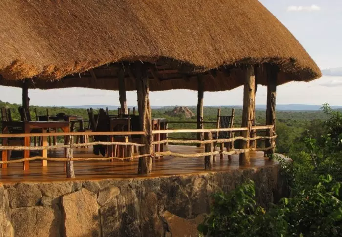 Utsikten fra restauranten kan ta pusten fra de fleste. Et vannhull i nærheten tiltrekker seg ofte tørste dyr ved solnedgang, derfor kan man ofte nyte middagen til synet av sebraer og impalaer.
