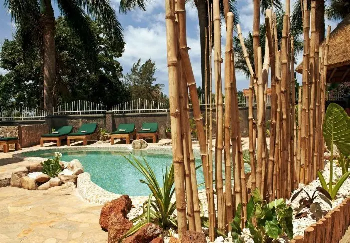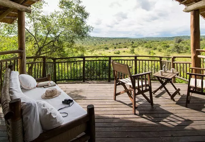 Restauranten og loungeområdet er delvis åpne, slik at du aldri føler deg langt unna naturen, og med litt flaks får du kanskje et glimt av antilopene som av og til beiter i hagen.