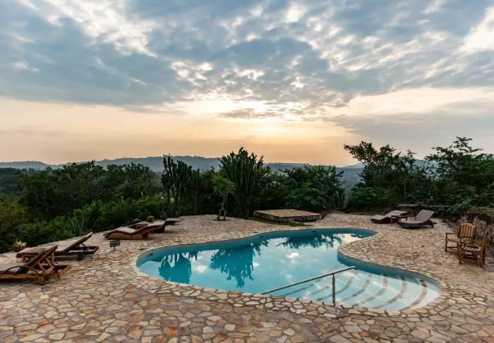 I det vestlige Uganda, rett utenfor Queen Elizabeth nasjonalpark, finner du den flotte Kingfisher Lodge. Med sin beliggenhet på en ås 250 meter over sletten har denne lodgen en fenomenal utsikt over nasjonalparken.