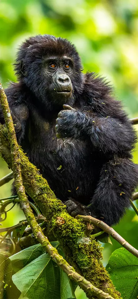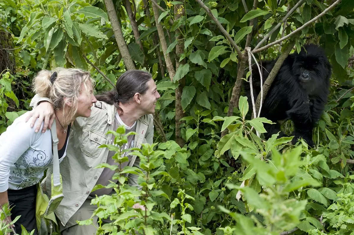 Du skal tidlig opp i dag, og vi anbefaler du starter dagen med en solid frokost før du kjører til nasjonalparkens hovedkvarter. Du bør være i rimelig god form for å få optimalt ut av dagens opplevelser. Man vet ikke på forhånd hvilken gruppe fjellgorillaer man vil møte, så det er ikke lett å si hvor langt du må gå for å komme inn til ”din” gruppe. Mens du blir registrert og får instrukser om hvordan vandringen skal foregå, sendes det ut speidere for å lete etter gorillaene, slik at du ikke må lete gjennom hele skogen for å finne dem. Speiderne sørger for at sjansene til å faktisk se en gorillaflokk er meget gode.