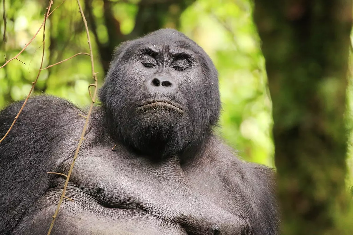 Fra rangernes hovedkvarter vandrer du avsted sammen med guider gjennom tykke ranker av slyngplanter og underskog for å finne gorillaene. Det skogkledte landskapet er utrolig tett, men det gjennomskjæres av mange dyrestier som gjør det enklere å gå her. Gled deg over den flotte vandringen gjennom skogen og hold utkikk etter andre dyr og fugler.