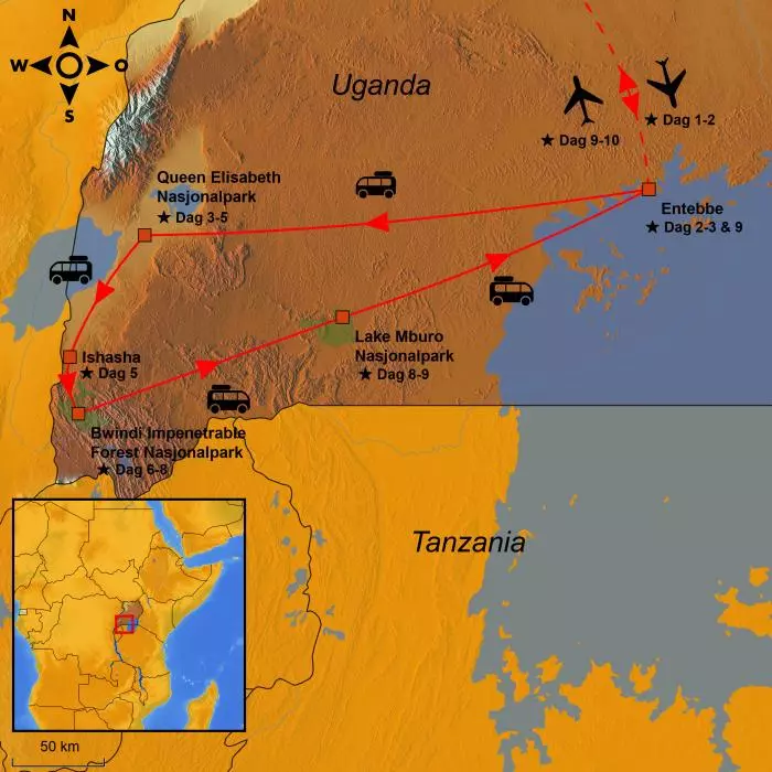 | Dag 6 | Ishasha til Bwindi | 55 |