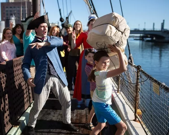 Museet har kopier av seilskip fra 1700-tallet, og du får sjansen til å delta i tradisjonen med å kaste te over bord, akkurat som kolonistene gjorde.