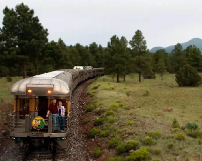 Bli med på denne uforglemmelige heldagsturen fra Williams til Grand Canyon South Rim tur/retur. Her kan du ta toget tilbake i tid når du kjører gjennom det varierte, flotte landskapet på den historiske jernbanelinjen som ble etablert i 1901.