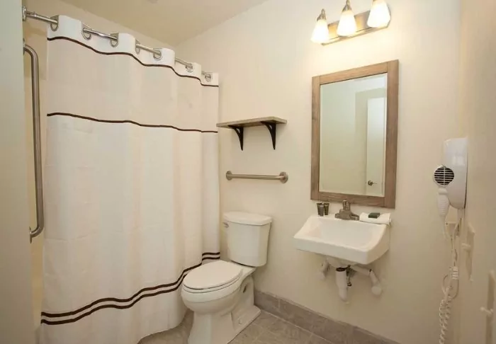 Hotellet er eldre, men grunn av den suverene beliggenheten er det manges førstevalg, for utvalget av overnattingssteder i området er begrenset. Rommene er enkelt innredet med gulvteppe og tremøbler i typisk lodge-stil. Alle rom har TV, takvifte, aircondition og eget bad med toalettartikler og hårtørker. Dessuten er alle rom innredet med tekjøkken med et par kokeplater, et lite kjøleskap, mikrobølgeovn, brødrister og kaffemaskin. Det er mulig å kjøpe Wi-Fi-tilgang, men forbindelsen er meget begrenset.