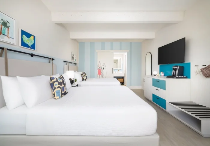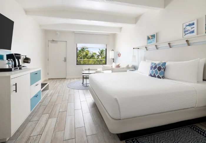 Blue Flamingo Resort Key West har 100 lyse og luftige rom i moderne stil. Rommene har senger og veggkledning laget av resirkulert treverk, som skaper en behagelig og avslappet atmosfære. Alle rommene har TV, gratis wifi, kaffemaskin, minibar, aircondition og eget bad med hårføner og badekåper.