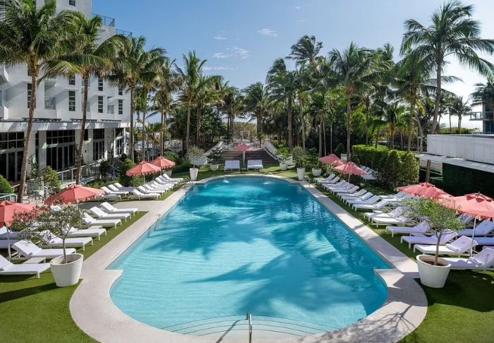 Hotellet er innredet i klassisk Art Deco-stil med inspirasjon fra Middelhavet, noe som skaper en lys og avslappet atmosfære – perfekt for en ferie i Miami.