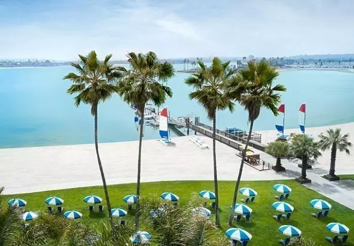 Catamaran Resort & Spa har en av områdets beste beliggenheter. Hotellet ligger rett ved bredden av den vakre og rolige bukten Mission Bay, der man både kan gå eller sykle rundt i bukten, stå på paddle board eller dra på båttur. Samtidig er du nær havet akkurat der Mission og Pacific Beach møtes, og der kan du rusle en tur på boardwalken.