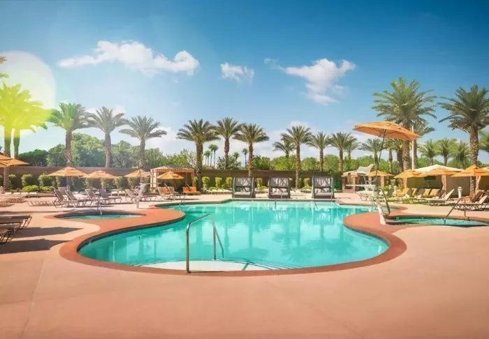 For å slippe unna ørkenvarmen kan du ta en dukkert i et av de tre bassengene, og her kan du slappe av med en lett forfriskning fra poolbaren eller bare svømme noen lengder. Her er det liggestoler med parasoller, og mot betaling kan du reservere en cabana på hotellets hjemmeside hvis du ønsker å ligge litt ekstra komfortabelt (først til mølla). Skulle du trenge enda mer velvære og avslapning, kan du bestille en behandling på hotellets spa.