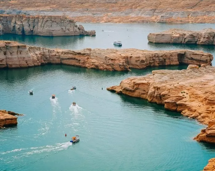 På selve Lake Powell er en båttur gjennom de flotte klippene et av høydepunktene, og dette kan du gjøre med vanlig båt, kajakk og i form av rafting.