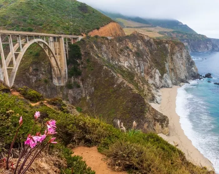 Rovfugler, bølger mot klippevegger, sjøelefanter, grønne enger og berømte broer: det blir litt av en dag! Legg eventuelt inn et stopp ved Julia Pfeiffer Burns State Park, der du kan se McWay Falls-fossen springe lekent fra klippesiden ut i den lille stillehavsbukten.