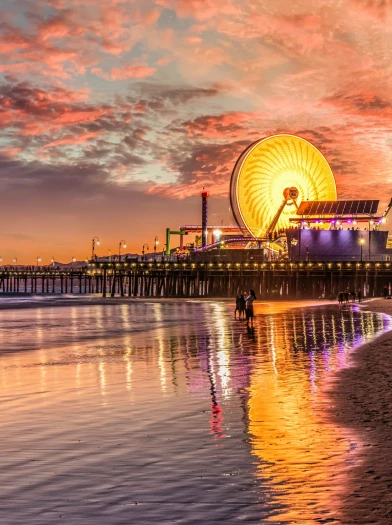 Det er opplagt å ta turen til livlige Venice Beach, hvor du finner alt fra lokale kunstnere til folk som trener langs den palmekledde strandpromenaden. I forlengelsen av Venice ligger Santa Monica Beach, som i mange år var kulisse for den populære Baywatch-serien, og som også markerer det offisielle endepunktet for den historiske veien Route 66. Spesielt ved den gamle piren er stemningen svært hyggelig, med både et sjarmerende tivoli, restauranter og vakre utsikter mot Santa Monica-fjellene. Ikke langt fra Santa Monica Beach finner du også den populære handlegaten 3rd Street Promenade.