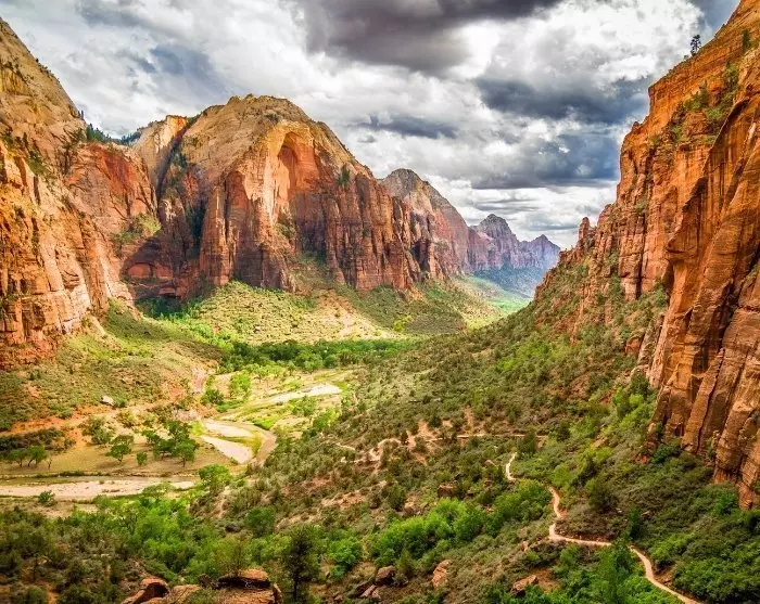 Herfra venter Utahs imponerende natur med Bryce Canyons søyleformede og oransje fjellspir, hoodoo-er, etterfulgt av de naturskjønne utsiktene til røde klippevegger og de frodige dalene i Zion nasjonalpark.