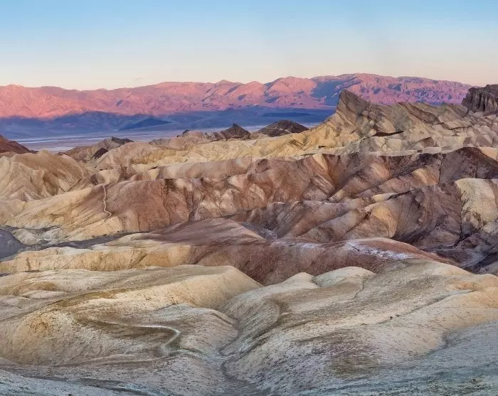 Stopp ved det ikoniske utsiktspunkt Zabriskie Point, der du har en eksepsjonell utsikt til det vakre fjellandskapet i forgrunnen og de ofte snøkledte Panamint Mountains i bakgrunnen. Besøk også USAs laveste punkt ved saltsletten Badwater Basin, som faktisk ligger 86 meter under havoverflaten.