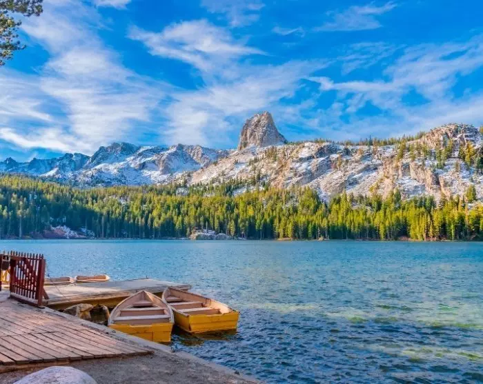 Etter en lang dag i bilen kommer du til Mammoth Lakes, der krystallklare sjøer og frisk fjelluft venter.
