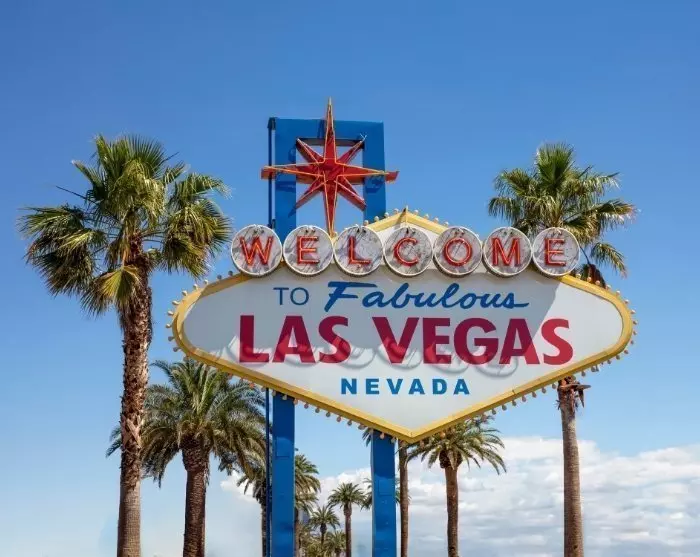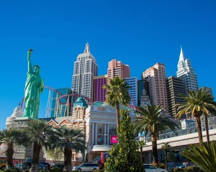 Du kan også kjøre den direkte veien til “Sin City”. Det er en enorm kontrast å komme fra storslått natur og ørken og plutselig kunne skimte skyhøye bygninger i horisonten. På den 6,8 km. lange Las Vegas Blvd., også kjent som The Strip, ligger temahotellene som perler på en snor. Hvis du kommer hit om kvelden, vil du se lysene fra hotellene som et fata morgana i horisonten lenge før du er inne i byen.