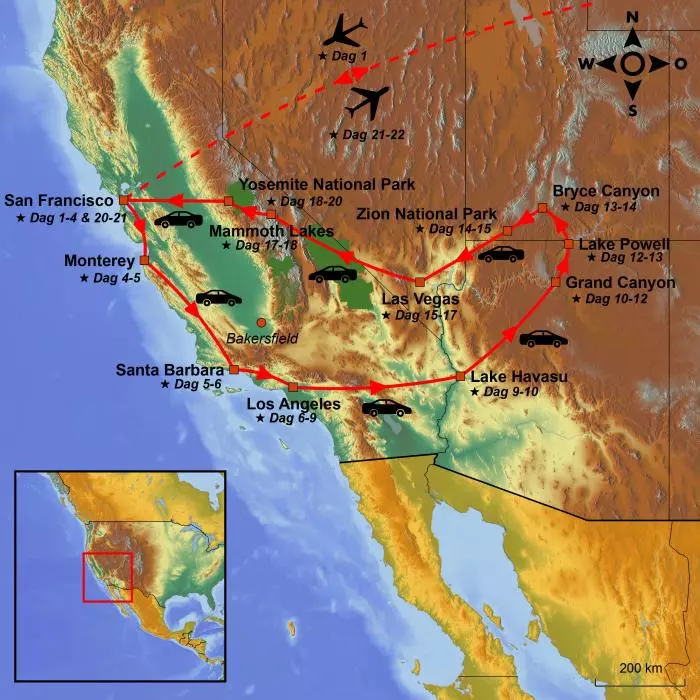 Bli med på en kjør selv-reise gjennom det vestlige USA, der høydepunktene ligger som perler på en snor. Dette er reisen for deg som vil få med seg alle de mest populære natur- og storbyopplevelsene på én og samme reise i statene California, Arizona, Utah og Nevada.